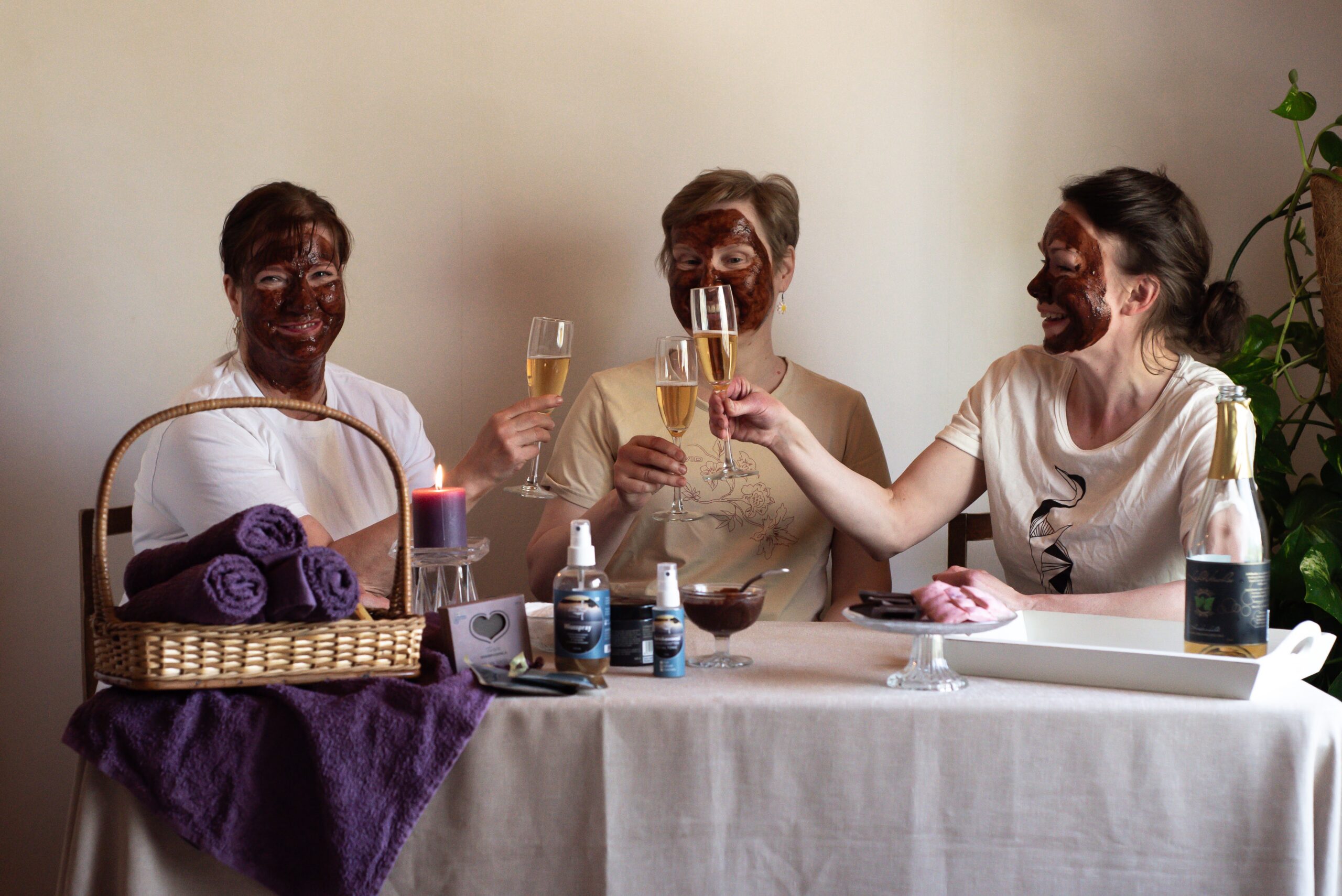 Päivän aikana annetaan tilaa kepeydelle. Naurujooga rikkoo jään, vapauttaa ja muistuttaa, kuinka helppoa ilo voi olla, kun sen jakaa. Yhteinen suklaakasvohoito ja lämmin suklaajuoma tuovat hemmottelua ja pysähtymistä hetkeen. Smoothiehetki virkistää, ja äänimaljarentoutus vie syvään lepoon, jossa ei tarvitse tehdä mitään – vain olla, vierekkäin ja rauhassa. Päivä päättyy kiireettömään ruokailuun, jossa nautitaan suolaisista vohveleista, raikkaasta salaatista sekä kahvista ja makeista herkuista.